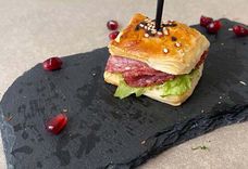 230 г • ветчина к/в, колбаса с/к, балык, бастурма, черри, маслины, зелень