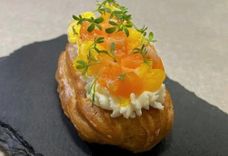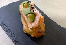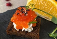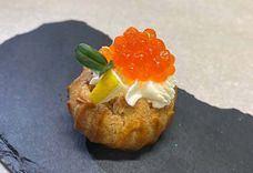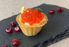45 г • крабовые палочки, огурец свежий, сыр, айсберг, майонез, икра красная, тарталетка