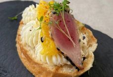150 г • семга, палтус, кальмар копченый, черри, лимон, зелень