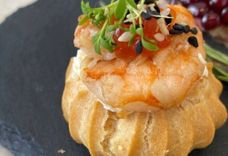 100 г • салат микс, черри, яйцо перепелиное, соус цезарь, креветки, сыр пармезан, гренки