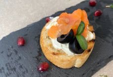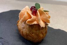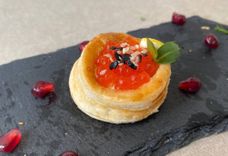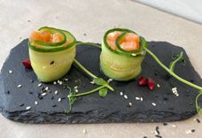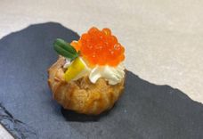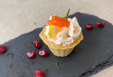 45 г • крабовые палочки, огурец свежий, сыр, айсберг, майонез, икра красная, тарталетка